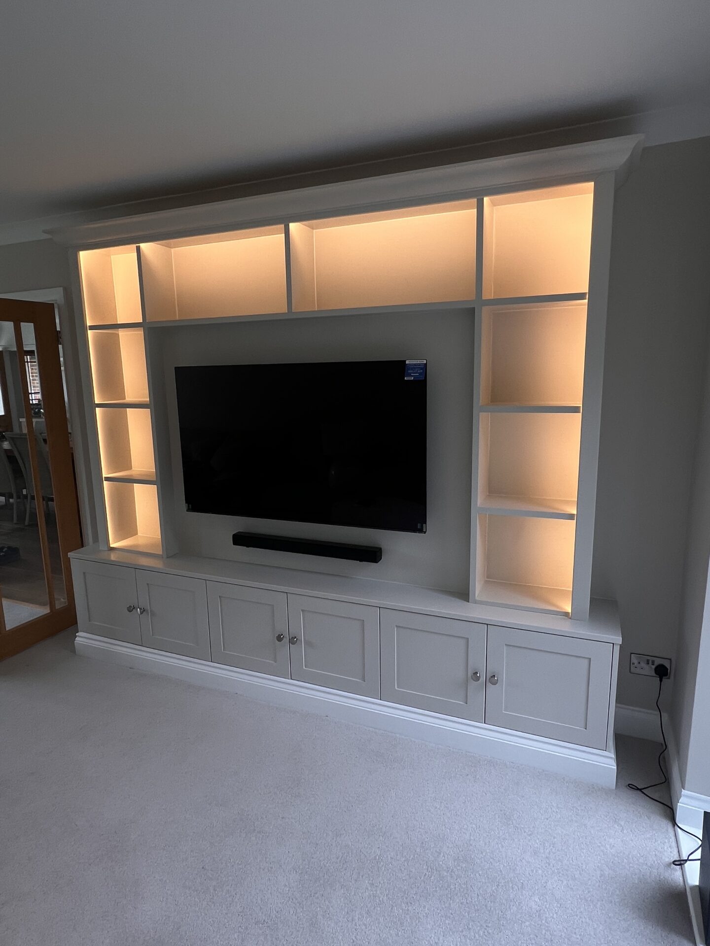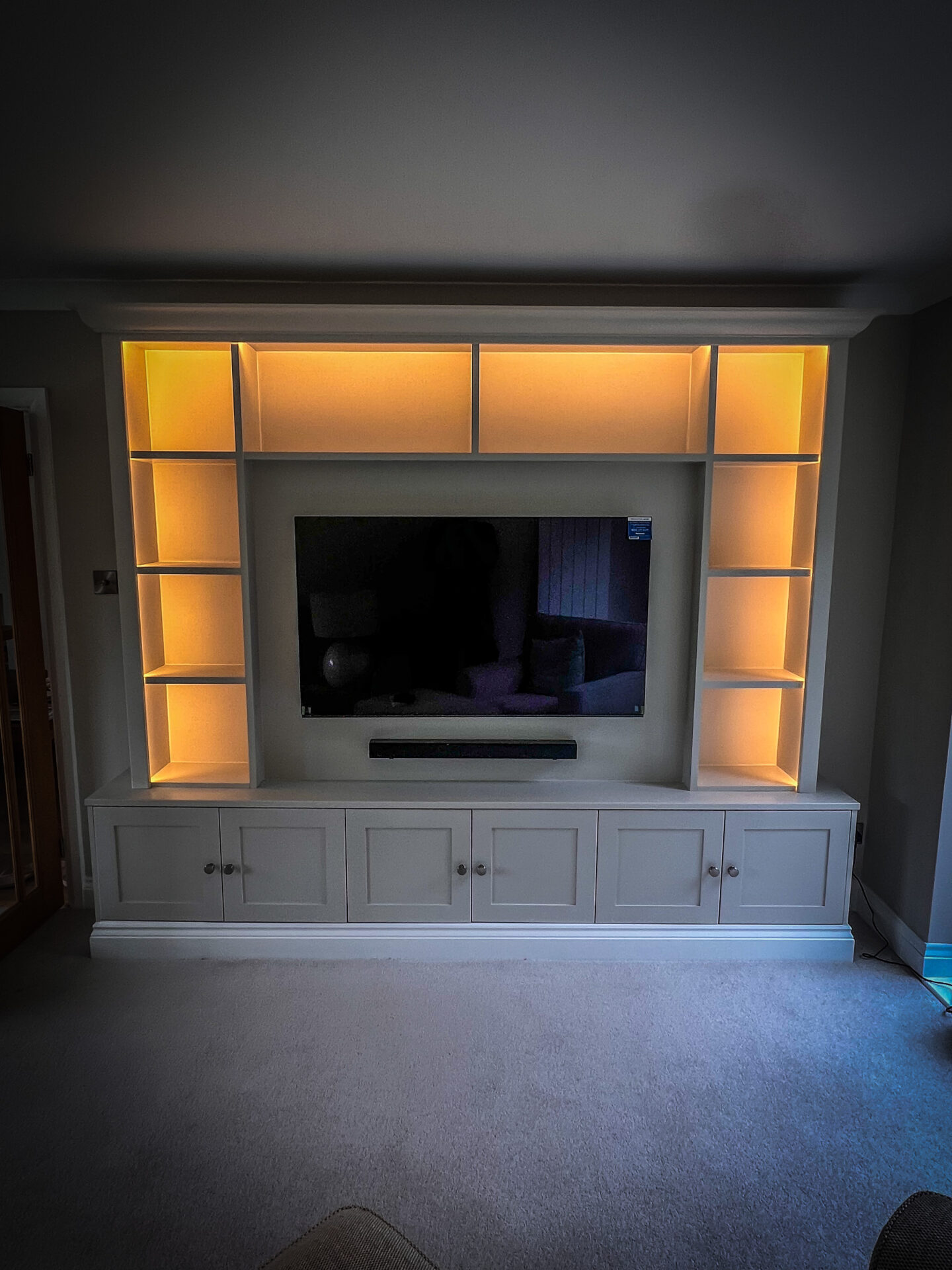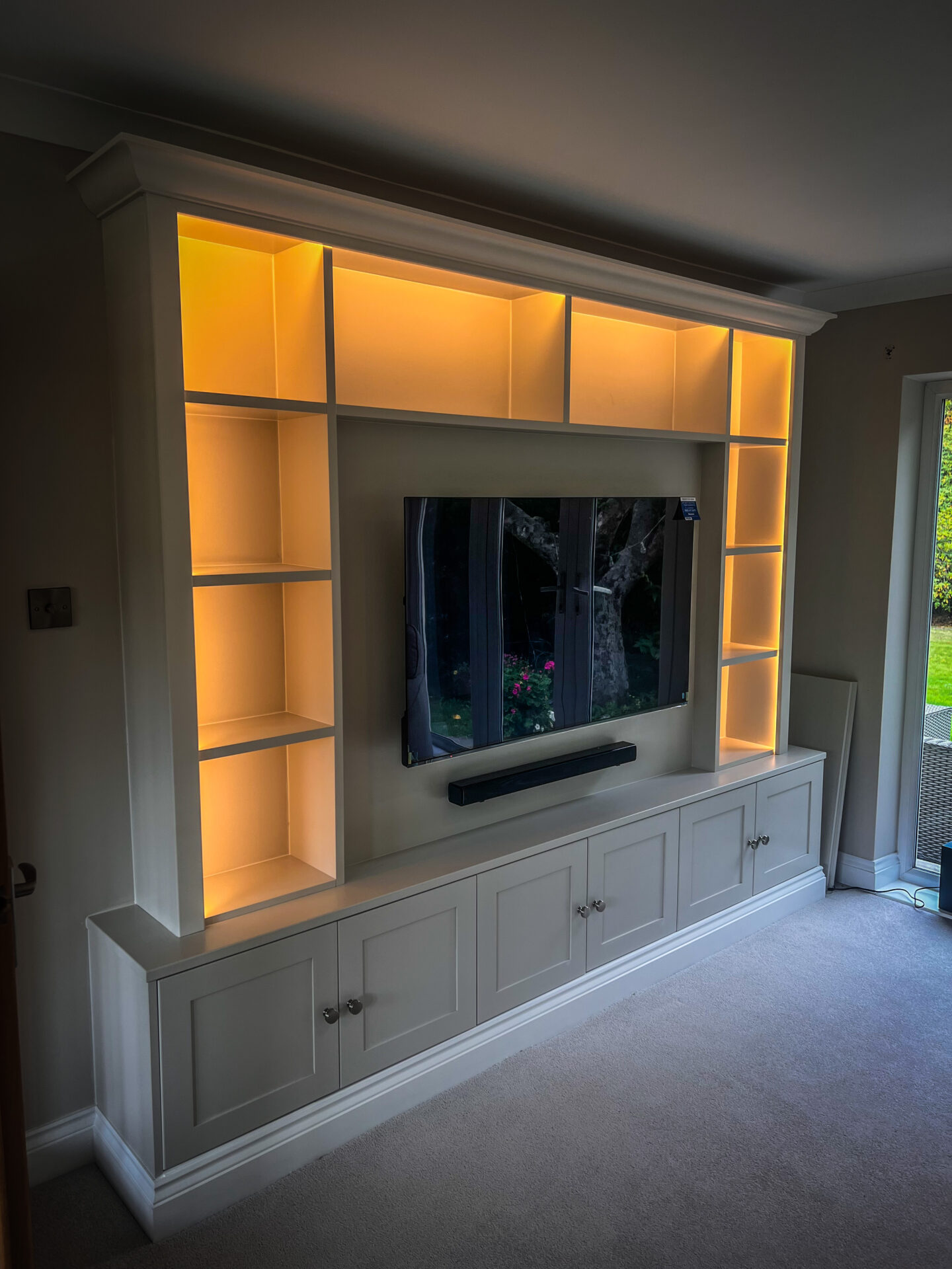 Bespoke TV unit, spray finished with remote controlled lighting.