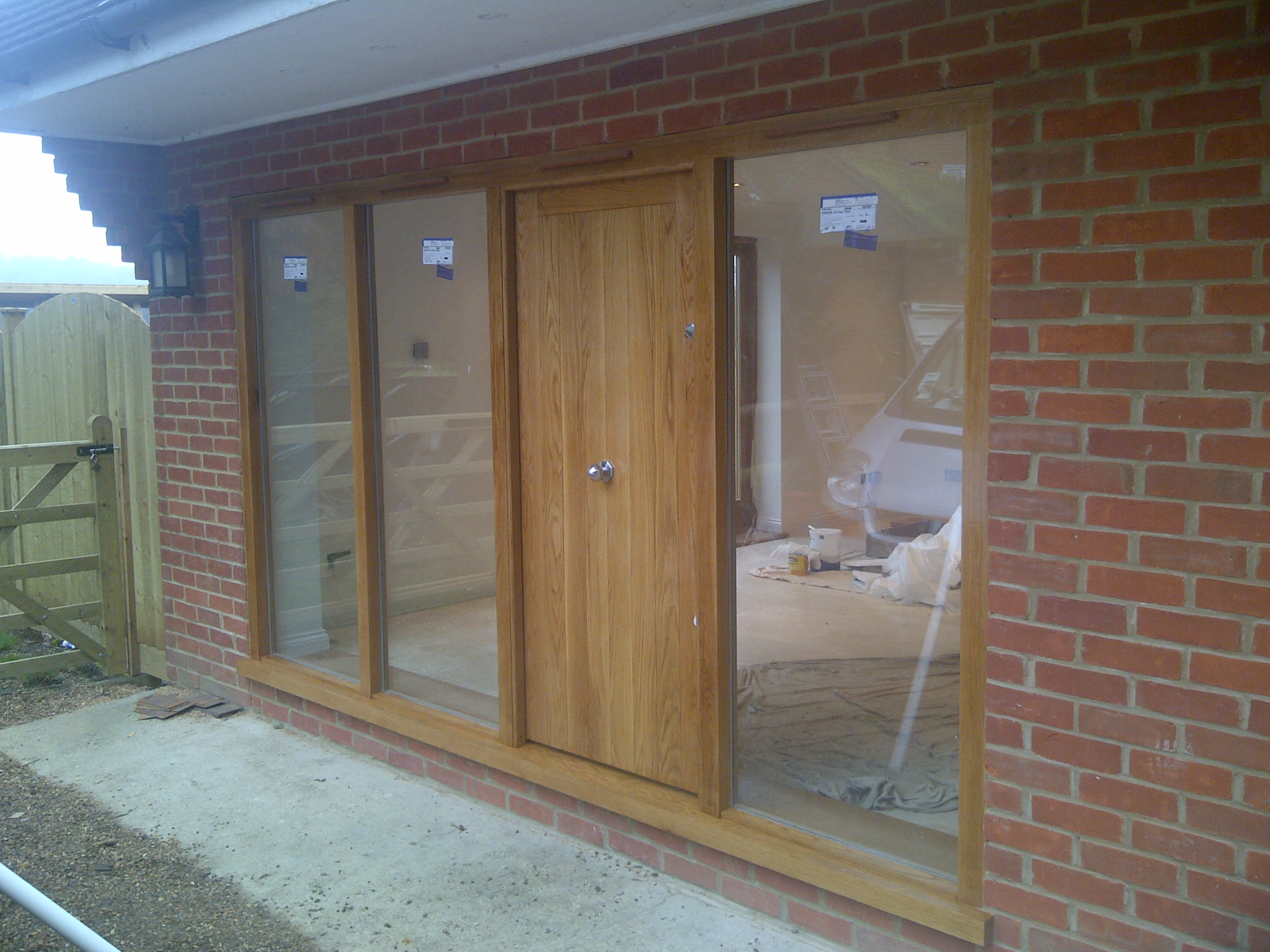 Surrey joinery spcecialists were contacted about a project to convert a large detached garage into a two bedroom dwelling. We were asked to produce and install two sets of french doors and a large entrance all in American white oak with regulation conforming thermal glass.
