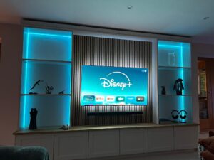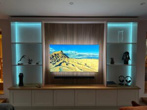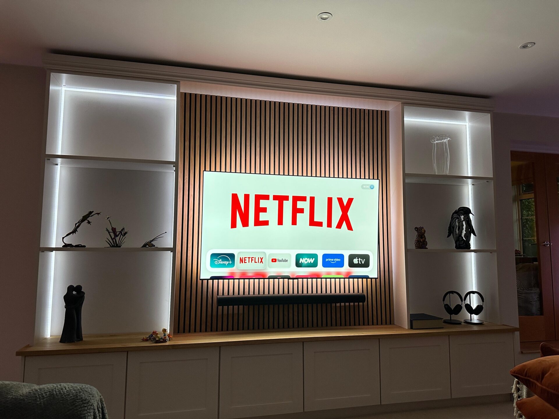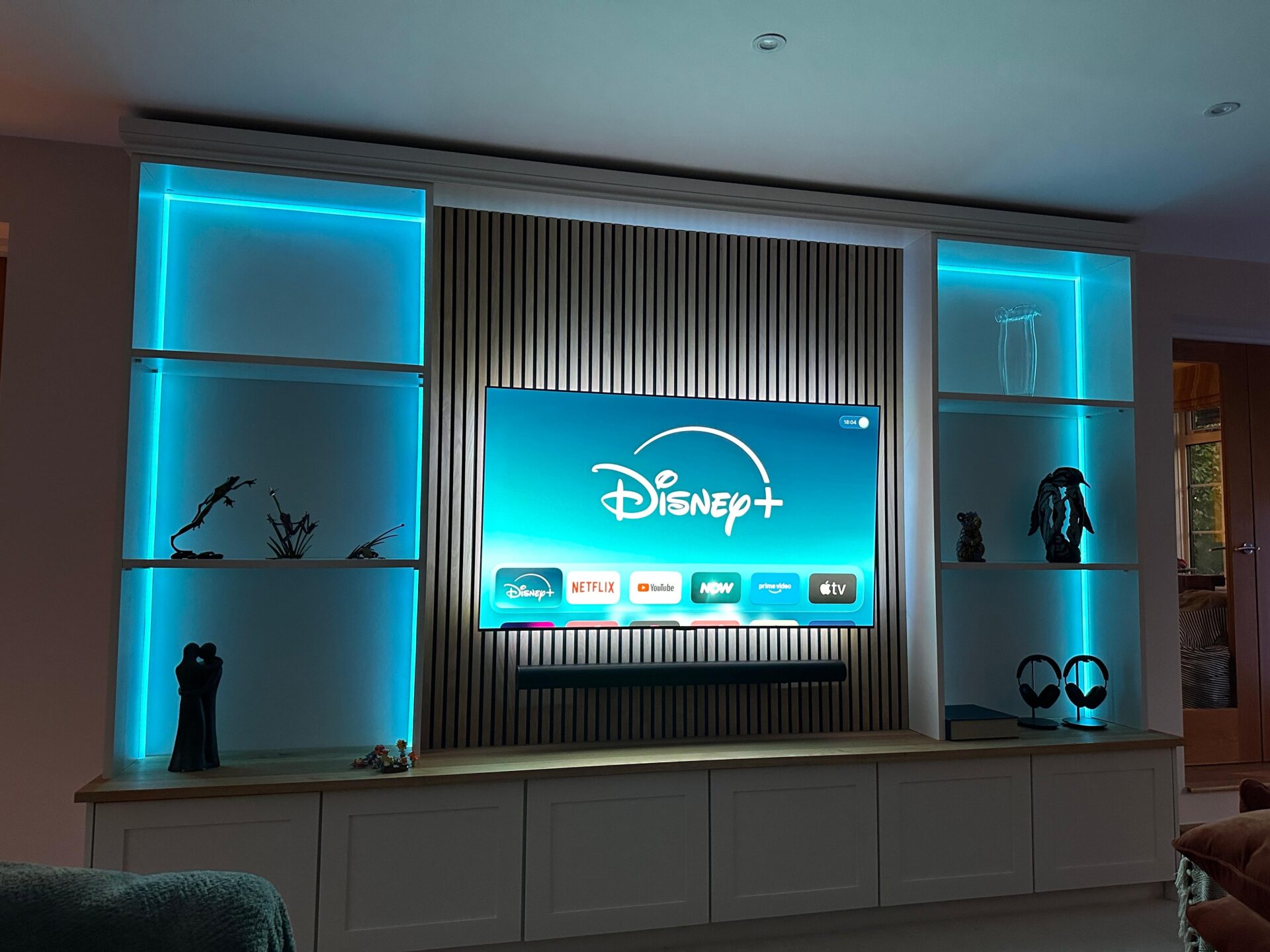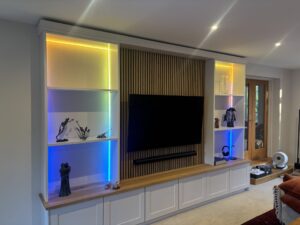 Bespoke TV unit, spray finished with remote controlled lighting.